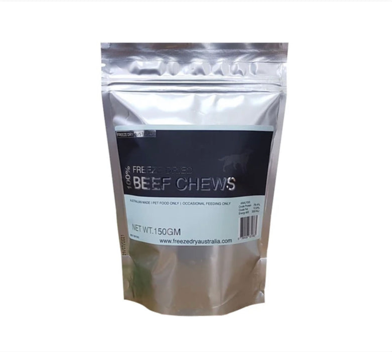 Freeze Dry Australia Freeze Dried Beef Chews Dog Chew has a tough & chewy texture that will entertain your dog for hours, all while helping him to remove persistent plaque & tartar!