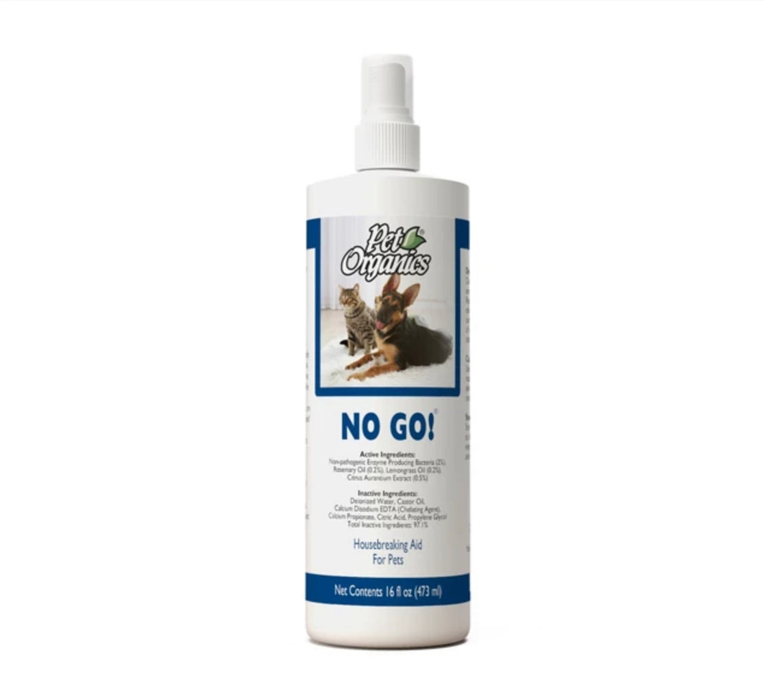 NaturVet Pet Organics No Go! House Breaking Aid for Pets gets rid of the smell from spots that your pet has previously marked so that they will not be compelled to urinate in that area again.