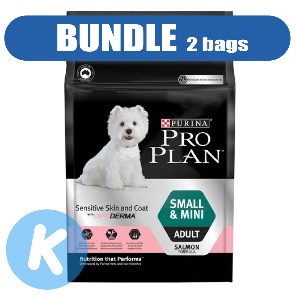 PRO PLAN Small & Mini Sensitive OptiDerma Salmon has been specially developed by nutritionists and veterinarians to meet the needs of small and toy breed adult dogs that are prone to sensitive skin. This dry dog food contains the OptiDerma formula, which is a clinically proven combination of vital nutrients designed to promote healthy skin and an attractive coat.