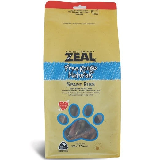 Zeal Free Range Naturals Spare Ribs Dog Treats are 100% pure natural New Zealand beef treats for dogs. An excellent chew with lots of meat and red marrow, soft bones from calves.